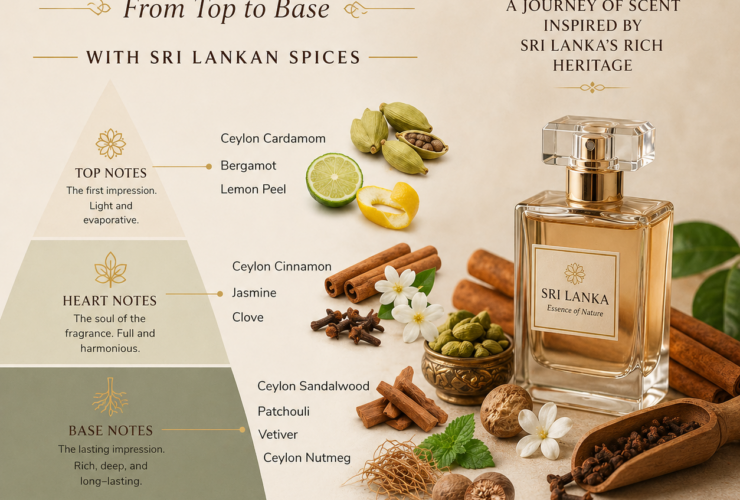 Learn the perfume pyramid with local spices like cinnamon and cardamom. Understand top, middle, and base notes for better scent choices in Sri Lanka.